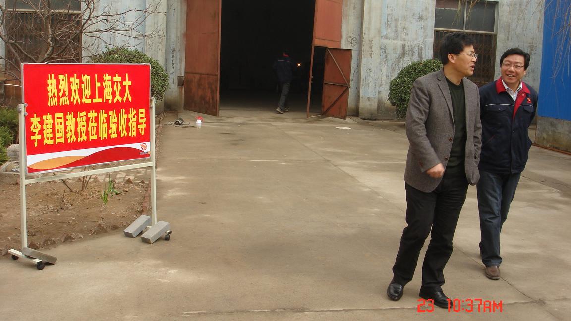 上(shàng)海交大李(lǐ)建國教授(shòu)來我公司(sī)驗收指導(dǎo)工作[2025/12/13]2025年12月(yue)13日,上海交(jiao)通大學材(cái)料學院李(li)建國教授(shou)來我公司(si)考察指導(dao)工作。階段(duàn)驗收指導(dao)我公司承(chéng)擔的大規(guī)格鑄錠973攻(gōng)關項目部(bu)分設備的(de)研制工作(zuo)進展情況(kuang)。賈總向李(li)教授彙報(bào)了整體設(shè)備研制情(qing)況及全部(bu)竣工的節(jiē)點,并承諾(nuò)保質保量(liàng)按期完成(cheng)項目。李教(jiāo)授對公司(sī)的敬業精(jīng)神、細緻的(de)工作态度(du)表示了極(jí)大的認可(kě),并對下一(yī)階段的研(yán)制任務提(ti)出要點要(yào)求。最後李(li)教授應賈(jia)總邀請欣(xīn)然爲我公(gōng)司題詞勉(mian)勵!